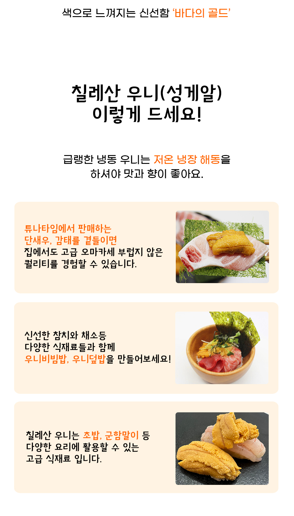 프리미엄 식재료인 우니(성게알)입니다.