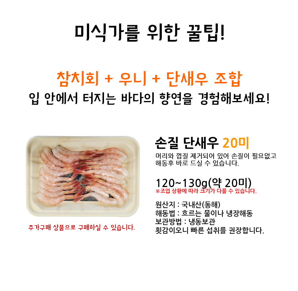 고급 오마카세집에서만 맛 볼 수 있었던 우니(성게알)와 참치 / 단새우 조합을 원하시는대로 드셔보세요.